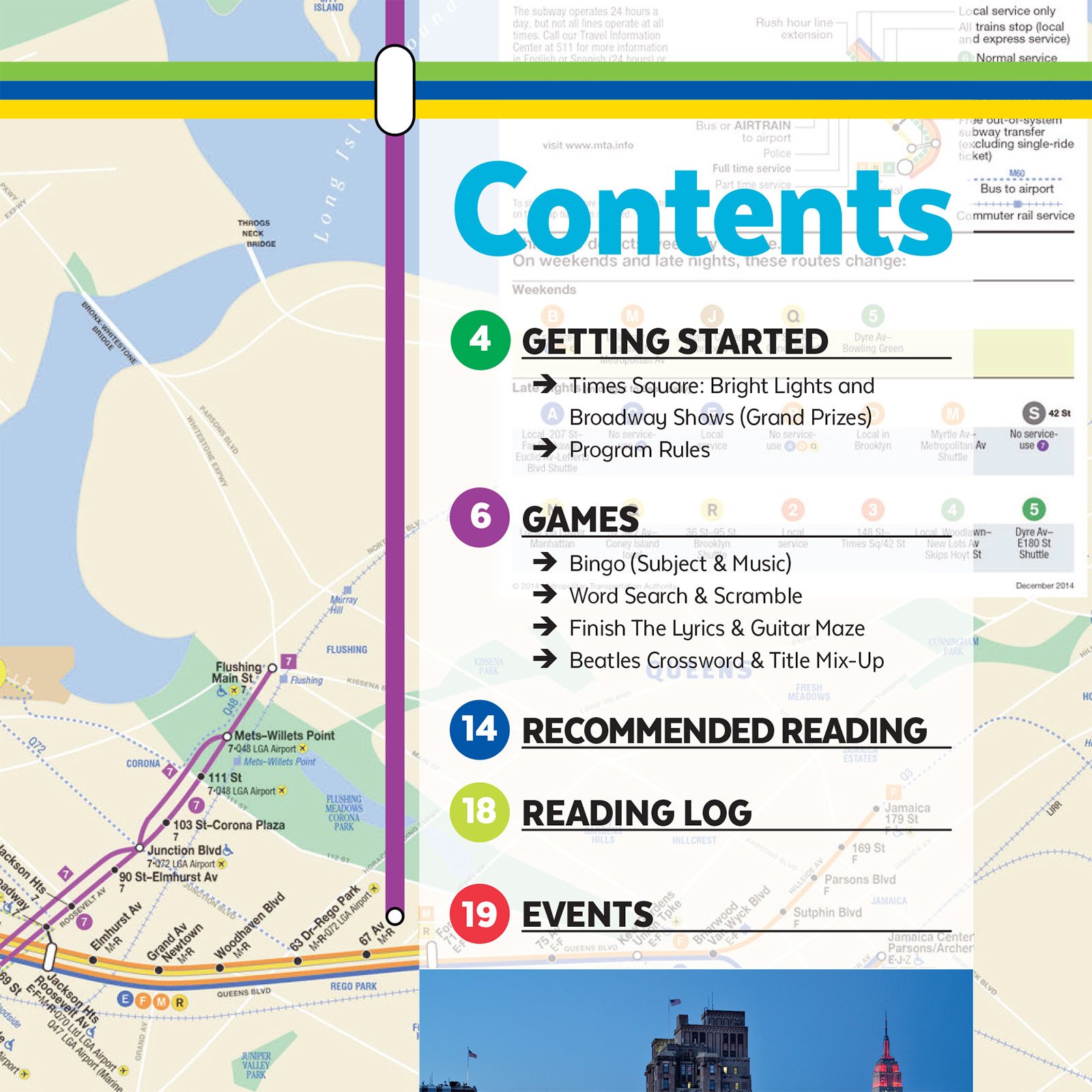 I designed a full suite of materials for the program, including event posters, flyers, and a 16-page full-color booklet for participants. The central design element was inspired by the iconic lines of the NYC subway map, a globally recognized symbol.