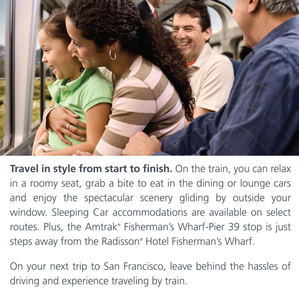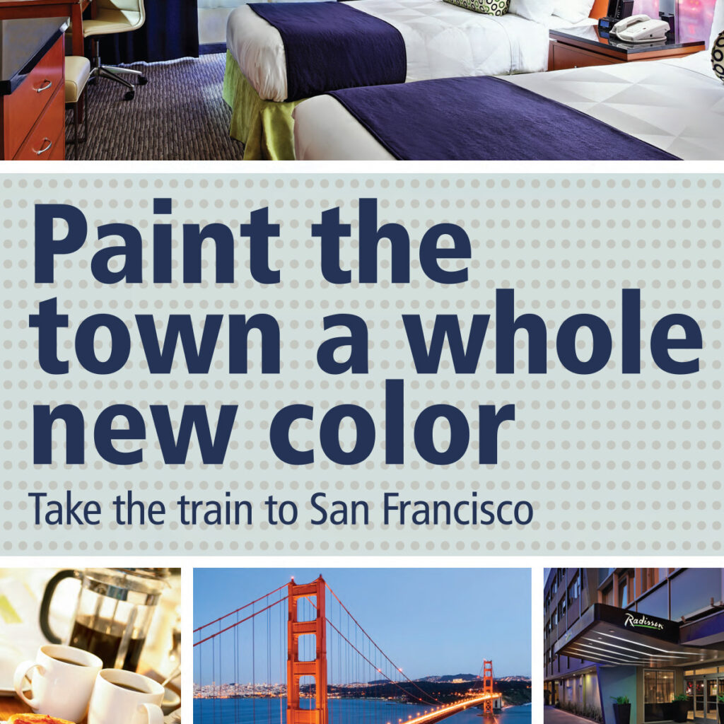 I helped forge a new partnership between Amtrak and Radisson Hotels, creating a special offer for passengers to stay at the Radisson Fisherman’s Wharf. My task was to design all the promotional materials, ensuring a seamless visual blend of both brand identities.