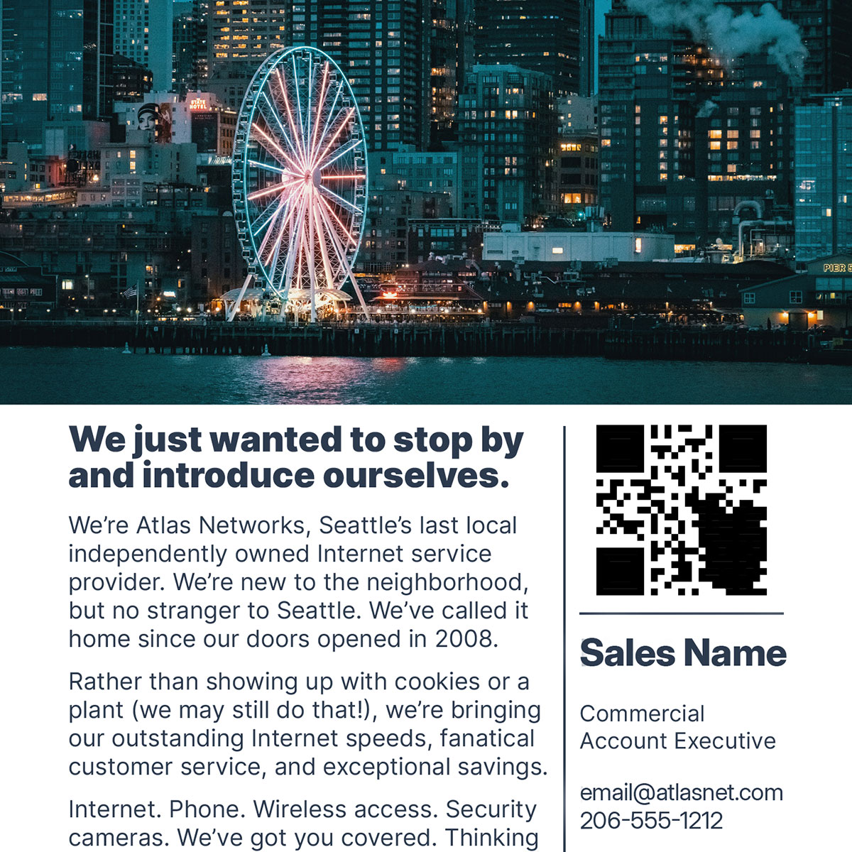 Atlas Networks, an underdog Internet Service Provider in Seattle, faced a significant challenge in 2020: a loss of business momentum. When I joined as the Creative Services and Marketing Manager in 2022, the sales team was struggling with generic materials that weren’t generating results.